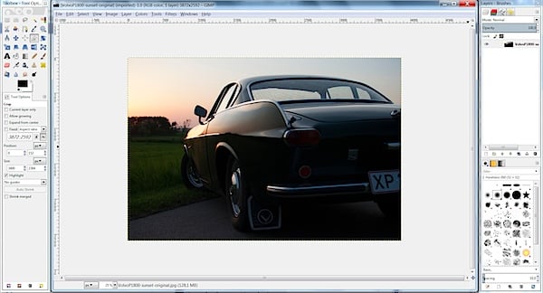 Si vous voulez manipuler les outils en temps réel, la photo brute utilisée dans le tutoriel est accessible. Il s’agit d’un Volvo P1800 vert course, capturé l’an dernier, identique à celui de Roger Moore dans The Saint, histoire de famille oblige.