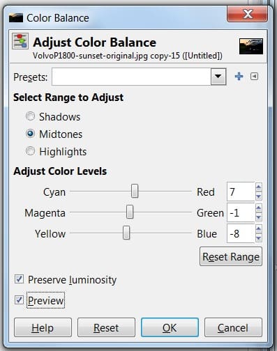 Ouvrez le menu Balance des couleurs et concentrez-vous sur les tons moyens :
